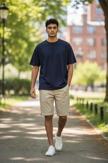 Bermuda uomo in popeline di cotone.Tinto in capoChiusura davanti con zip e bottone, passanti in vita, due tasche alla francese sui fianchi, due tasche a filetto dietro.Risvolto sul fondo. Leggi tutto