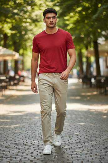 Pantaloni uomo chino in popeline di cotone leggero.Tasche alla francese sui fianchi e a filetto dietro