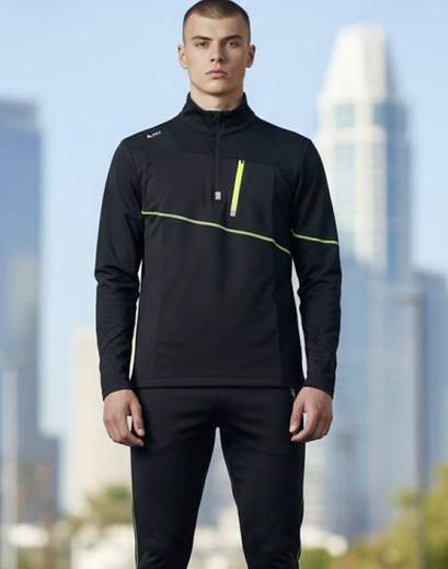 Maglia uomo Running Tessuto elasticizzato garzato internamente. Zip centrale e taschino petto in contrasto. Polsi studiati per l'utilizzo dello smart watch. Stampe rifrangenti e alcune cuciture in contrasto. Leggi tutto