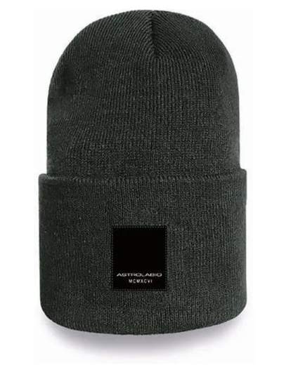 Berretto a maglia rasata in doppio strato con risvolto al fondo ed etichetta marchio frontale.